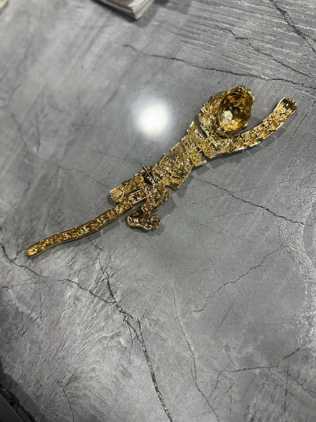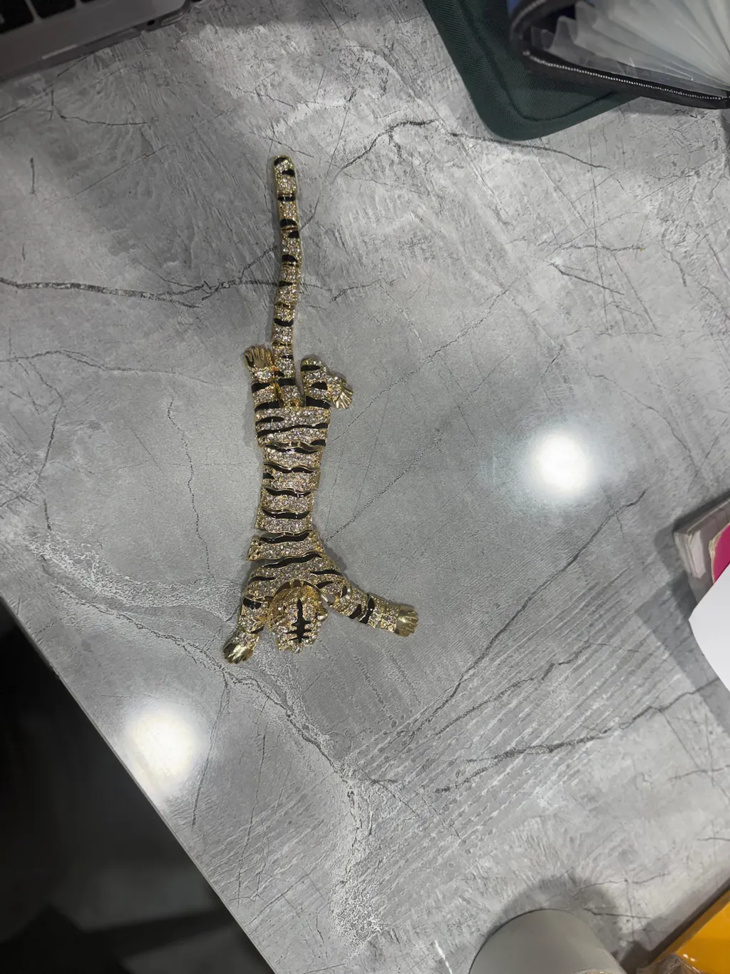 This golden tiger piece is absolutely stunning! The craftsmanship is detailed, with a realistic design highlighted by sparkling stones and bold stripes. It feels premium in quality, with a good weight that makes it perfect as a showpiece or statement accessory.