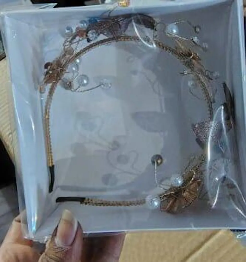 This headband is absolutely beautiful! The delicate gold detailing with pearls and leaf designs gives it a classy, royal touch. Lightweight yet durable, it sits comfortably without slipping. Perfect for weddings, parties, or photo shoots — it instantly makes you look elegant and stylish.