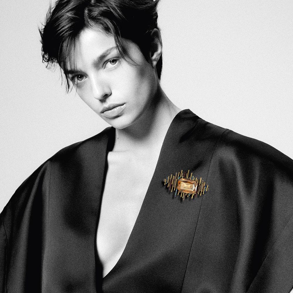 This brooch is available in three rich, aristocratic colour expressions, each crafted to command attention while remaining timeless: