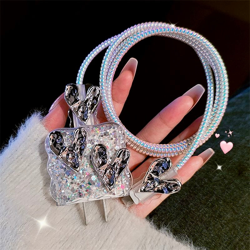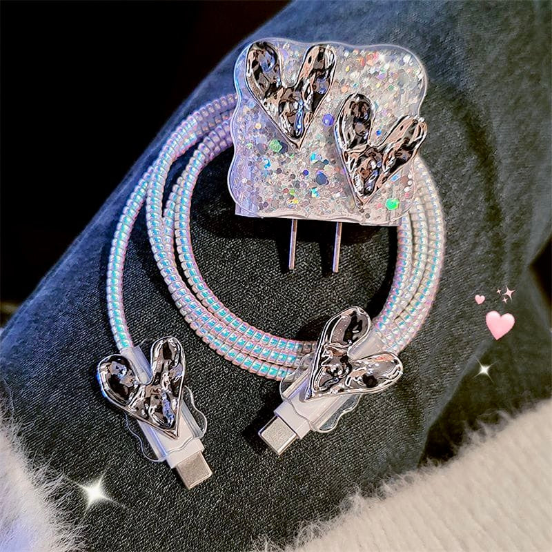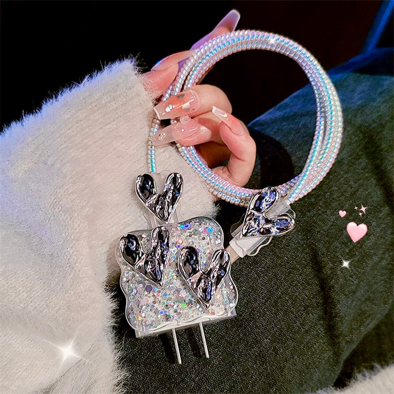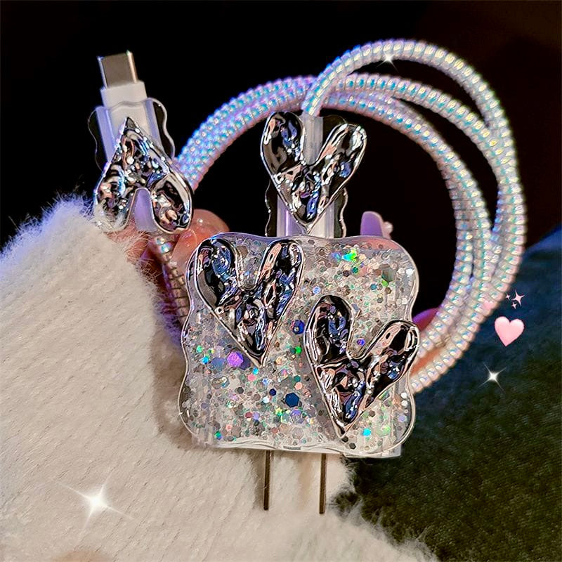 Make charging both stylish and safe with the iPhone 20W Charger Case – 3D Wrinkled Heart Edition. Designed with sparkling glitter and raised wrinkled heart accents, this protective set not only safeguards your charger but also adds a trendy, eye-catching touch.