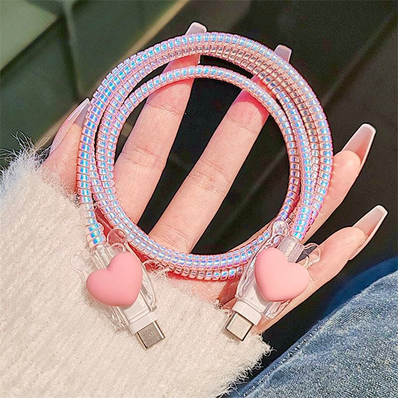Bring both protection and cuteness to your charger with our Pink Heart iPhone 20W Charger Case. Designed with head protection, two-end protection, and wire protection, it ensures durability while giving your charger a sparkling new look.