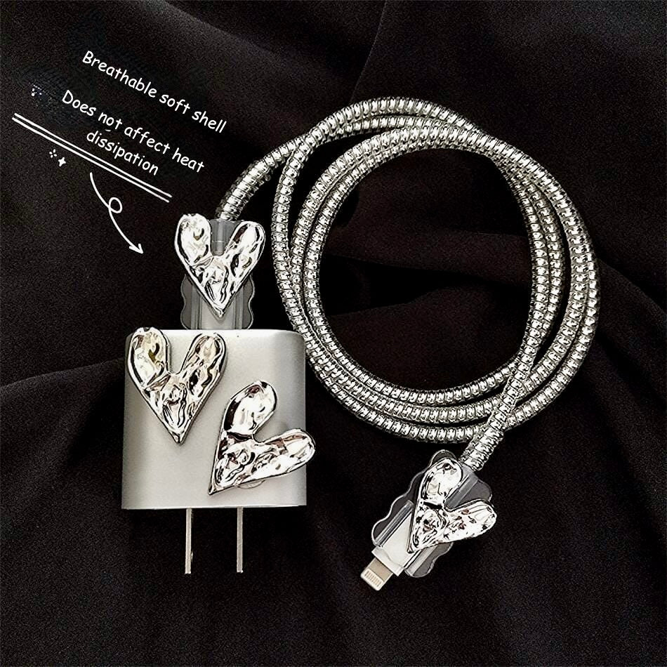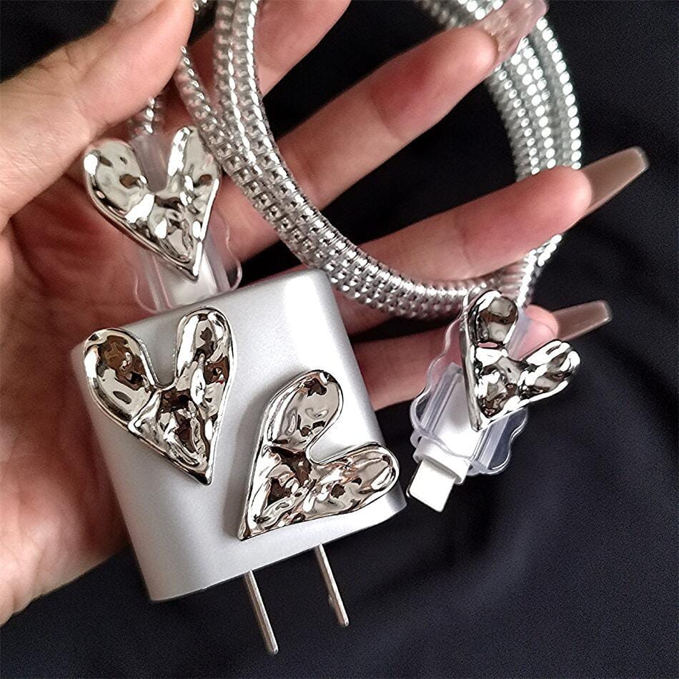 Bring elegance and durability to your everyday charging with the iPhone 20W Charger Case – Wrinkled Heart Edition. Designed with premium protective features, this set includes a beautifully decorated charger case with 3D wrinkled heart accents, plus enhanced cable protection for a safe and stylish charging experience.