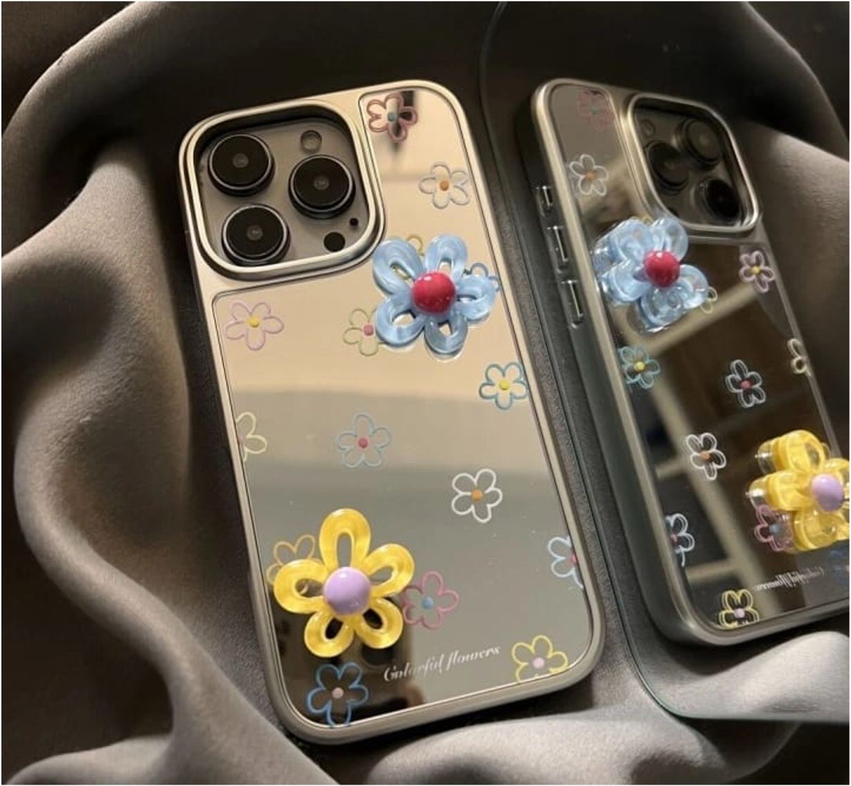 3D Mirror Flower iPhone Case | Cute Glossy Floral Cover for iPhone 14, 15, 16 Series