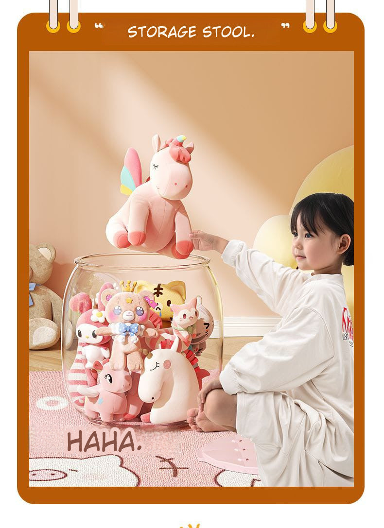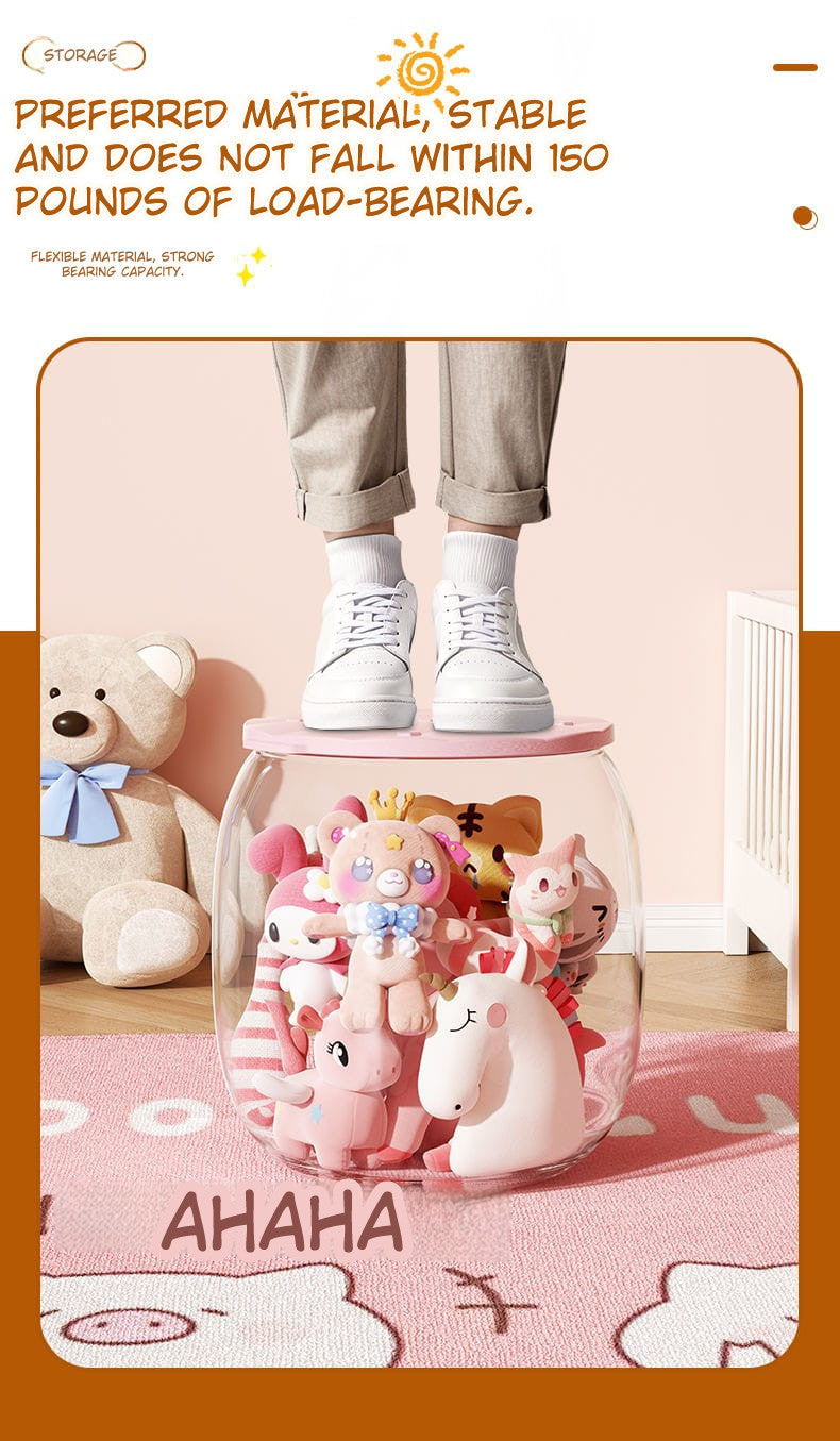 Snuggle Pod: Multi-Purpose Transparent Toy Storage Stool – 150 lbs Load, Waterproof, Dustproof, Kids & Home Organizer