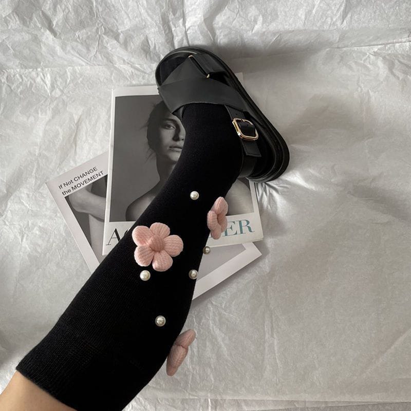 Elevate your outfit with our Three Dimensional Pearl Flower Calf Socks, designed with delicate 3D floral embroidery and pearl accents. Available in classic white and black, these socks combine comfort and fashion in one. Crafted from soft, breathable fabric, they add a playful yet elegant touch to your daily wear.