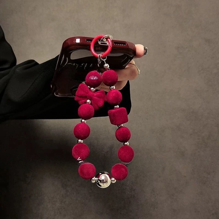 Elevate your phone’s look with the Wine Red Bow Beaded Keychain Phone Case with Transparent Clip. Featuring plush velvet-textured beads, a glossy bow, and a sturdy detachable strap, this case offers both beauty and safety. The rich wine color adds a luxurious vibe, making it perfect for both casual and party wear.